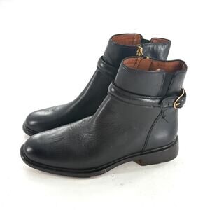 Franco Sarto Elese Leather Boots 6 Black NWOT Buckle Academia Prep Booties Zip