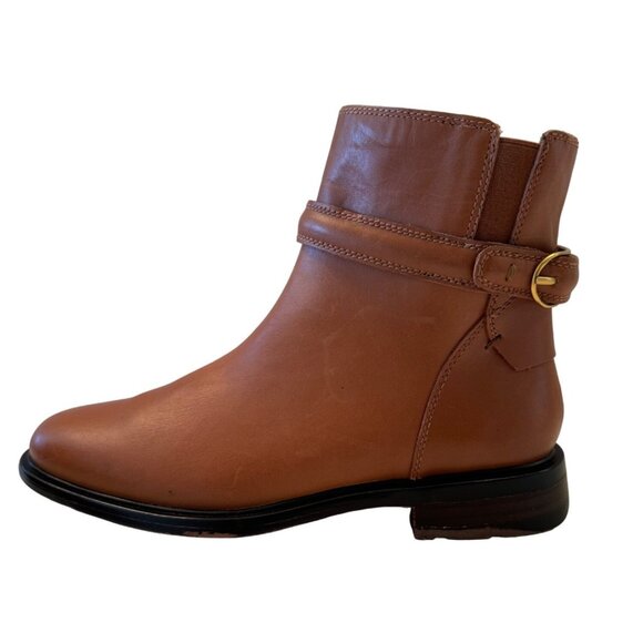 Stylish Franco Sarto Elese leather boots in a rich cognac color. Size 6. Perfect for adding a chic touch to any outfit. Ankle high with buckle detail and zip closure. New without box.