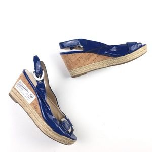 Franco Sarto Womens Blue Patent Buckle Espadrille Wedge Sandals 7 MISMATCH DR01970