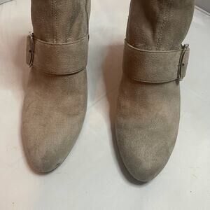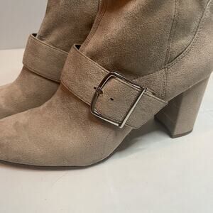 Zip into this buckle-accent pair that adds a pop of metallic shine to your denim and layered pairings with silvertone hardware. A lightly padded footbed cushions your every step.