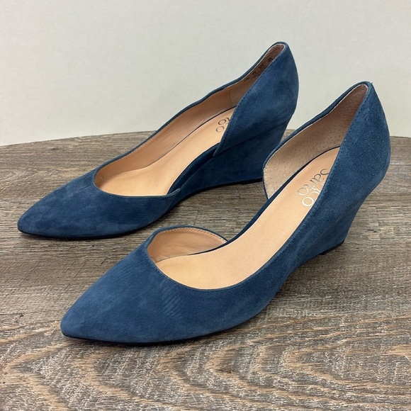 Franco Sarto FELICE D’Orsay Blue Suede Heeled Wedge 8.5