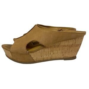Franco Sarto Fiona Tan Leather Cork Platform Wedge Slip On Shoes Size 11