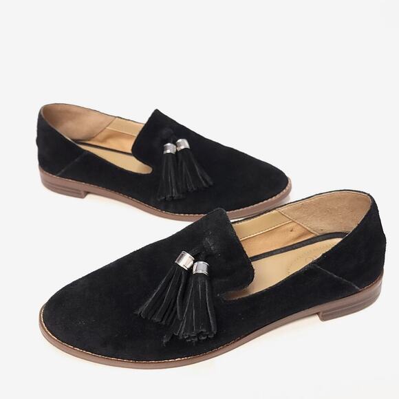 Franco Sarto Flat Loafers Size 7.5 Black Leather Shoes Women's Suede Used
