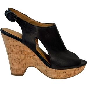 Franco Sarto Gabriel Black Open Toe Ankle Strap Leather Slingback Heel Size 7M