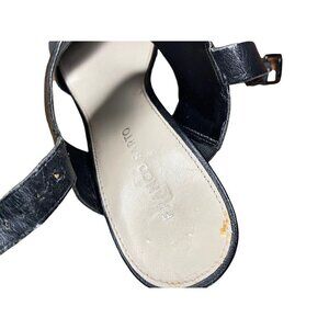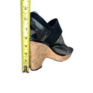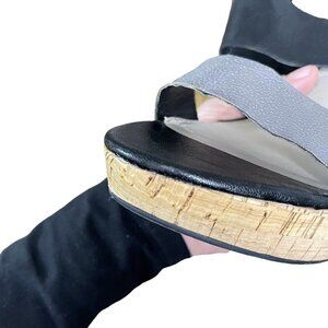 Franco Sarto Gardenia Size 10 M Black and Pewter Cork Wedge Heel Sandals Shoes