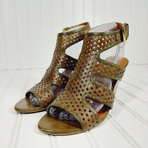 Franco Sarto Gavel Brown Leather Buckle Ankle Strap Wedge Sandals I268