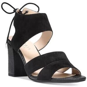 Franco Sarto Gem Lace-Up Block Heel Black Sandals Tie Strappy Formal Shoes Size 9