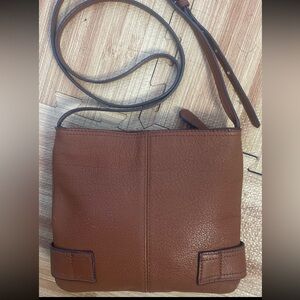 Franco Sarto Genuine Leather Buckle Crossbody Bag in Luggage Brown