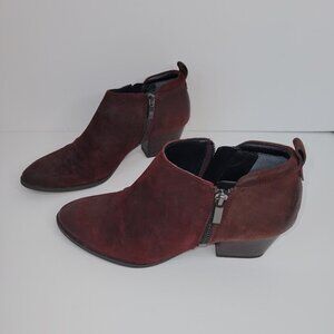 Franco Sarto Greco Ankle Boots Burgundy Suede Leather Zip Booties Womens SZ 6.5