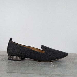 Franco Sarto Grey Brushed Felt Flats Silver Heel 8 Loafer Embellished Bedazzled