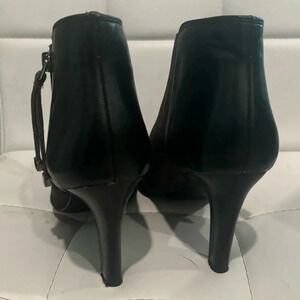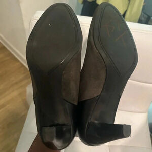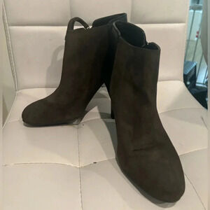 Franco Sarto Grey Suede Black Leather Side Zip Ankle Low Heel Bootie Sz 8.5M