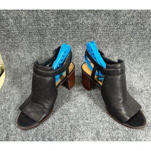 Franco Sarto Womens 9M Black Leather Open-Toe Slingback Heeled Sandals