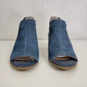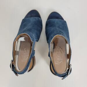 Franco Sarto Harlet Womens Sandals Sz 7.5 Blue Suede Leather Peep Toe Block Heel