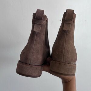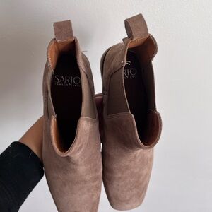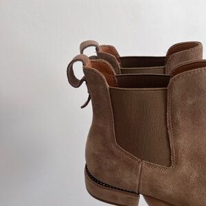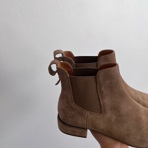 Franco Sarto Heather Suede Leather Square Toe Booties In Taupe