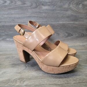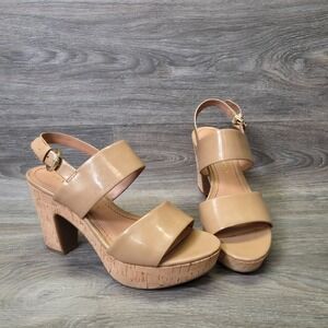 Franco Sarto Heel Womens 6.5M Nude Frank Faux Leather Strappy Chunky Statement