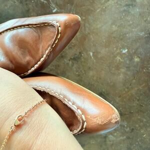 Franco Sarto Heels Leather Loafer Pumps Pointed Toe Buckle Cognac Tan Womens 10