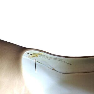 The right shoe has minor damage, (For your review, please see enlarged photos with arrows) I want the buyer to see the damage before purchase. The Heels are in otherwise excellent condition.