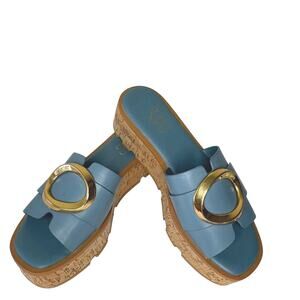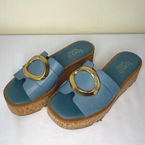 Franco Sarto Hoda Platform Wedge Slide Sandal Women's 7 | Blue | NWOT