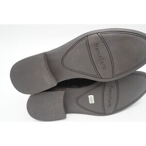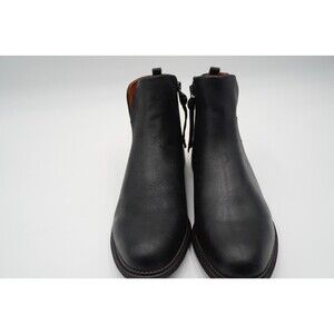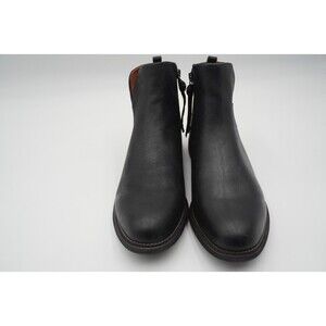 Pre-owned without tags or box Franco Sarto Hyla Leather Ankle Boot Women's Size 11M Black Bootie Side Zip. These sleek black Chelsea boots are crafted from a smooth leather. The boots have a slightly rounded toe, offering a classic and versatile look. A subtle heel adds a touch of elegance to these ankle-height boots.