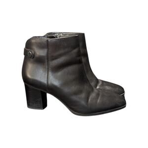 Franco Sarto Ilaria Black Leather Ankle Boots Heeled Booties Womens 10 Witchy
