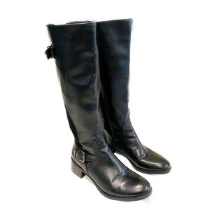 Beautiful Franco Sarto Riding Boots Women's Jespa Black Leather Mid Calf Western Size 5.5 with inner full length zippers.