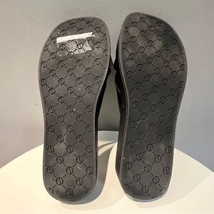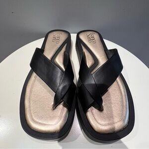 Franco Sarto Jonas Platform Sandals Black Faux Leather Thong Flatform Size 7.5