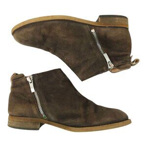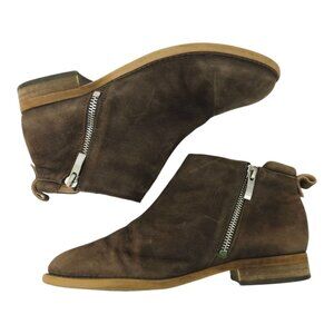Franco Sarto Keegan Ankle Boot Nubuck Leather Booties Womens Size 6 M Brown Double Zip