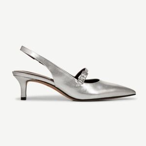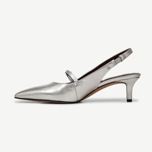 Elevate your sophisticated look with the Franco Sarto Khloe slingback pump. Boasting of synthetic upper with recycled materials and partially recycled lining, this pump offers sustainable use. Kitten heel brings the style factor to this silhouette.
