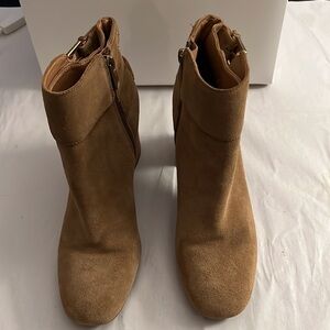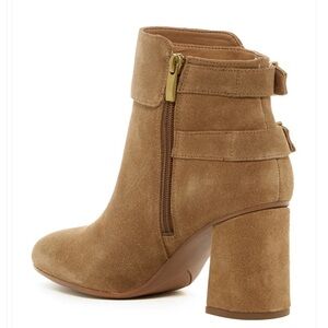 Franco Sarto Kline suede leather double buckle block heel booties ankle Sz 8