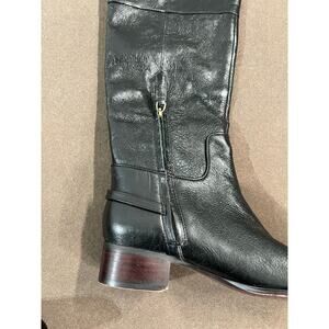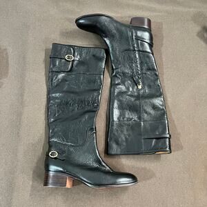 Franco Sarto Knee High Tall Black Leather Riding Style Boot Gold Buckle Size 6.5