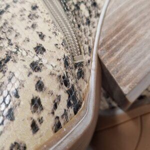 Franco Sarto L-Garcia Black & Cream Leather Snake Print Side Zip Ankle Booties Size 7.5