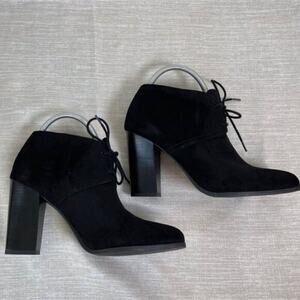 Franco Sarto Leandra Women’s Ankle Boot Black Suede Lace-Up Block Heel Size 8.5