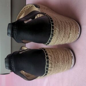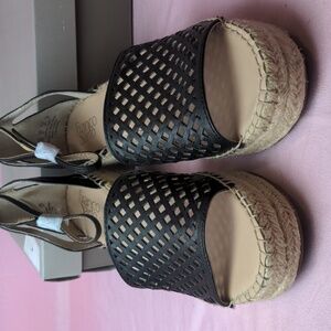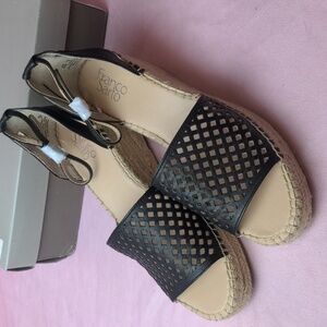 Franco Sarto Leather Black Calabria Wedge Sandals size 10