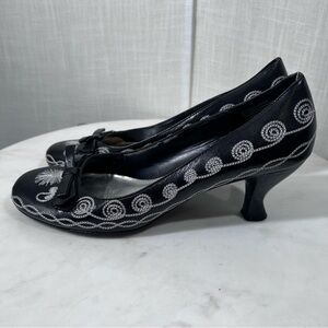 Franco Sarto Leather Embroidered Black & White Heels Size 8.5