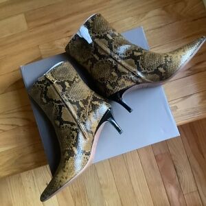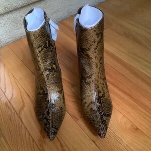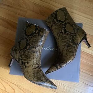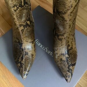 Franco Sarto Leather Kitten Heel Bootie Taupe Snake Print SZ 9.5