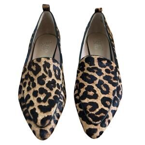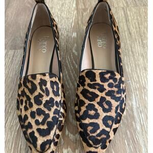 Franco Sarto Leather Leopard Print Pointed Toe Studio Loafers Size 9