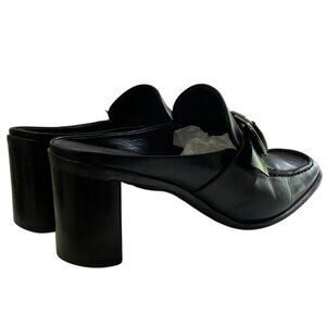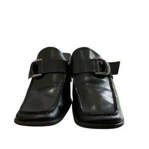 Franco Sarto Leather Mules Square Toe Y2K 90's Womens 8M Black Witchy Fairy Goth