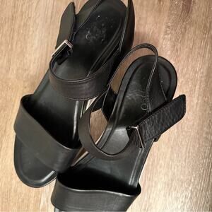 Franco Sarto Leather Strappy Platform Sandals Black 10