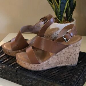 Franco Sarto Brown Wedge Sandals Whiskey Brown Sz 7.5