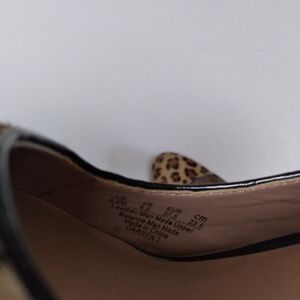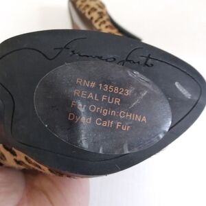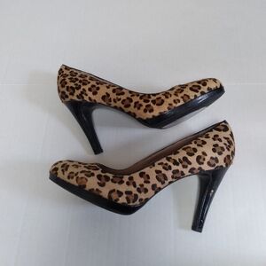 Franco Sarto Darren 2 round toe calf hair leather leopard print heels.