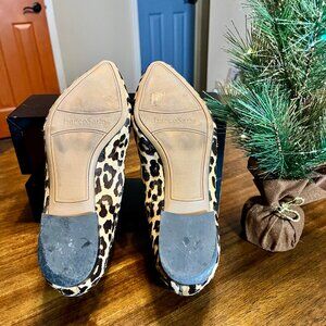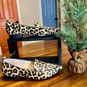 Franco Sarto Leopard Print Calf Hair Leather Loafers Pointed Toes Size 8.5
