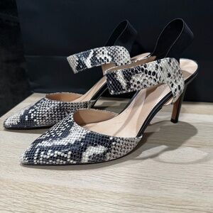 Franco Sarto Lima Pointed Toe Snakeskin Leather Ankle Strap Pumps Size 9.5
