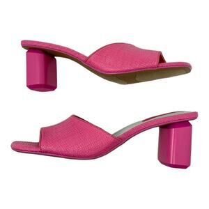 Franco Sarto Linley Slide Sandals Pink Size 6; A square toe and architectural block heel balance a minimalist slide sandal that will complement your poised warm-weather style.