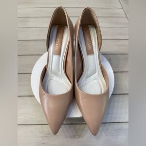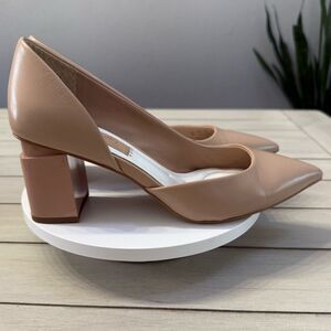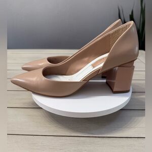 Franco Sarto Lucy D’orsay Block Heel Pump, Sand Beige Leather, Size 6
