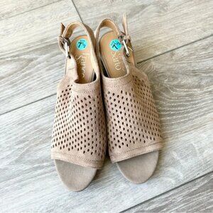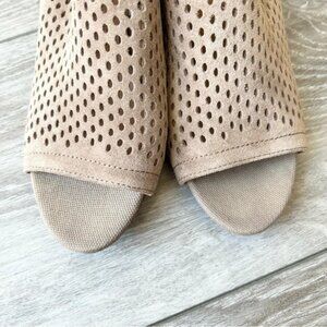 Franco Sarto Mandi Beige Caged Peep Toe Ankle Buckle Slingback Sandal Heels
