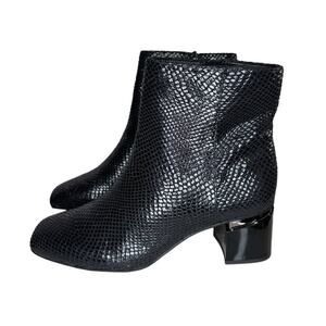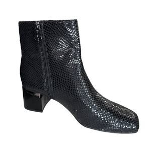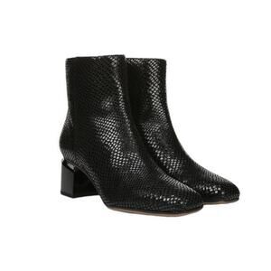 Franco Sarto Marquee Bootie Black Snake Print Embossed Leather Square Heel Ankle Boots