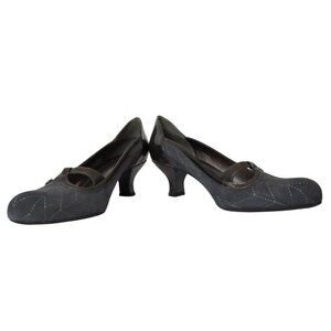 Franco Sarto, Mary Jane Kitten Heel Vintage Style Suede Pumps, Gray, Grey