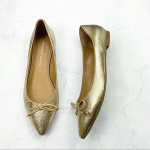 Franco Sarto Classic Metallic Gold Pointed Toe Flats. Bow Details. Cute & Comfy. Lightweight. NWT / New with Tags. No Stains. No Rips. Great Condition.