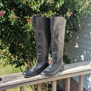 Franco Sarto Meyer Wide-Calf Black Knee-High Leather Boots