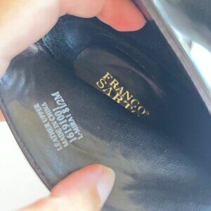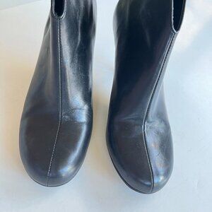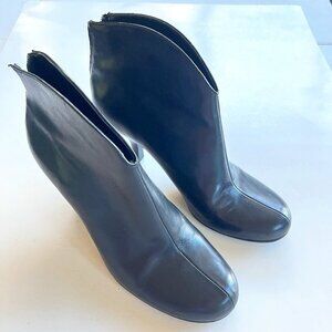 Franco Sarto Mira Black Leather Ankle Boots Heel Split Front Shoes Size 8.5M